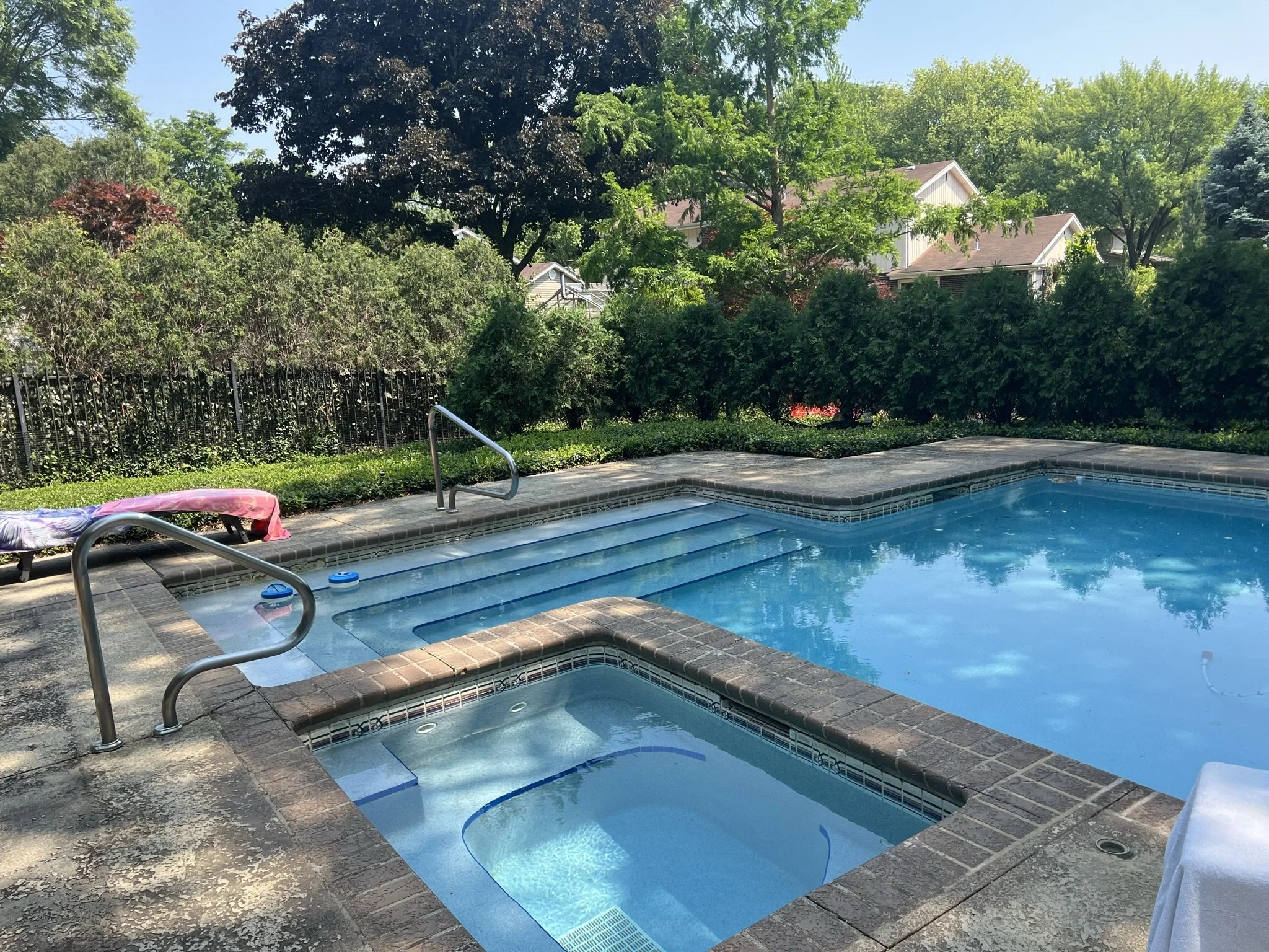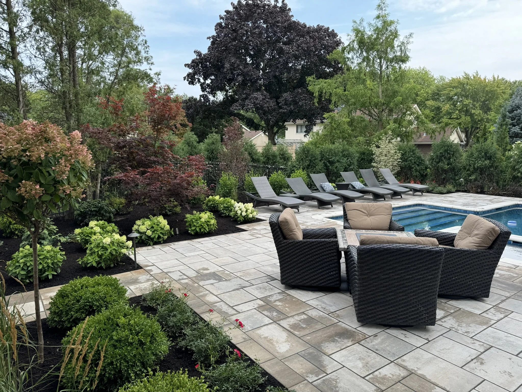 Poolside ParadiseThe 1970's pool and pool deck was ready for a facelift! All new design, materials and plant material resulted in a warm and welcoming summer paradise.
